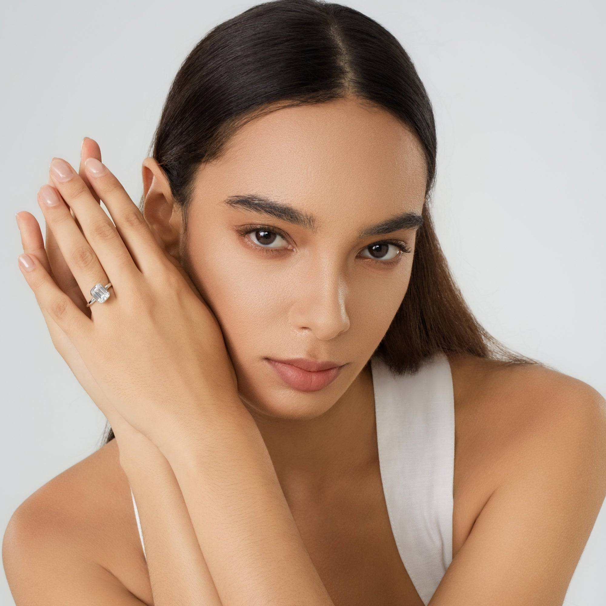 The emerald cut is celebrated for its elongated shape and step-cut facets, creating a distinctive mirror-like depth rather than intense sparkle. This results in a look that feels luxurious, composed, and refined.