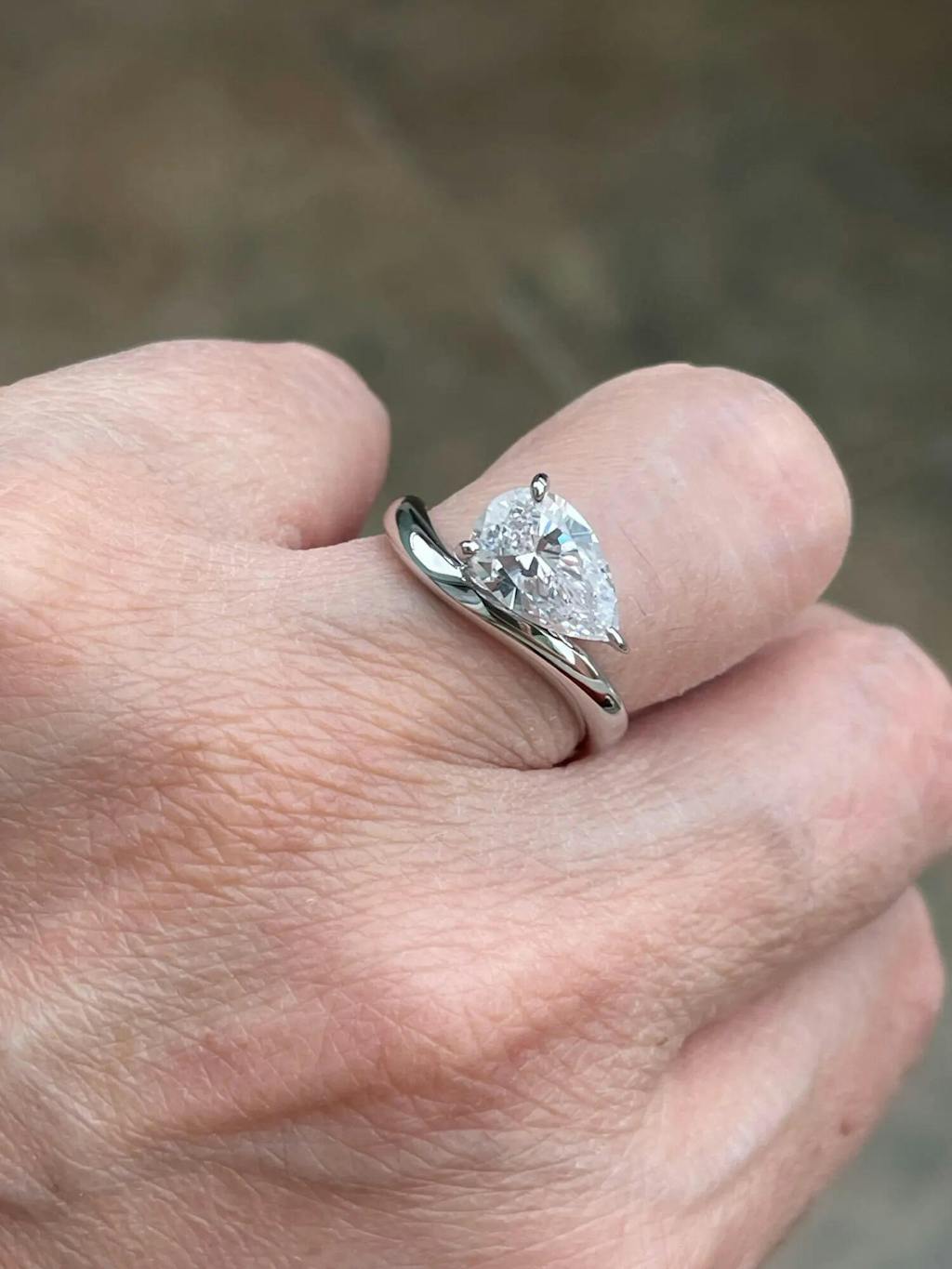 2.5 Carat Pear Cut Solitaire Curved Engagement Ring