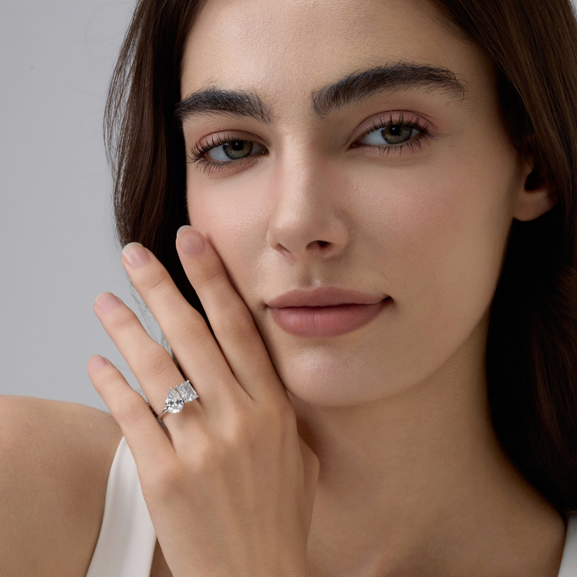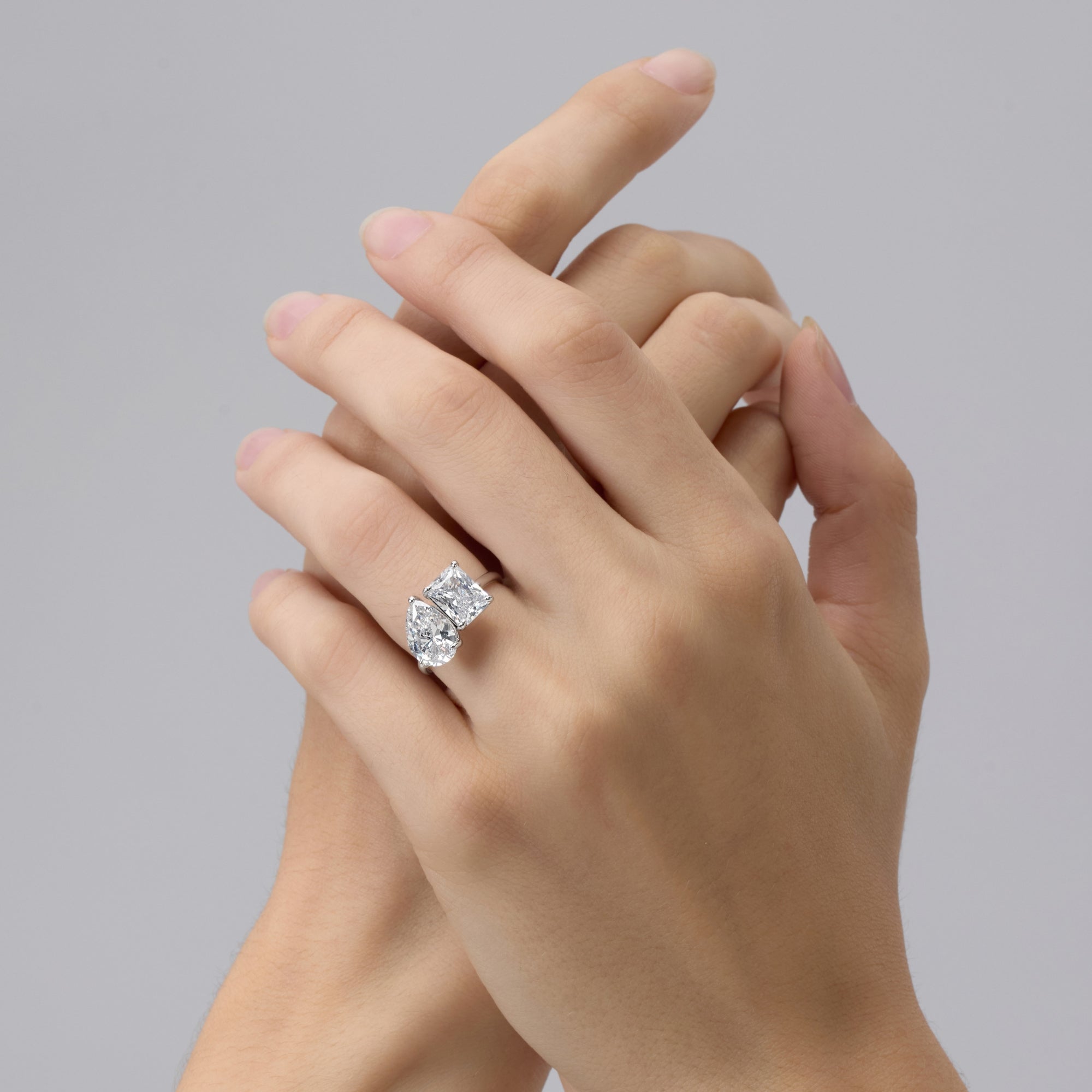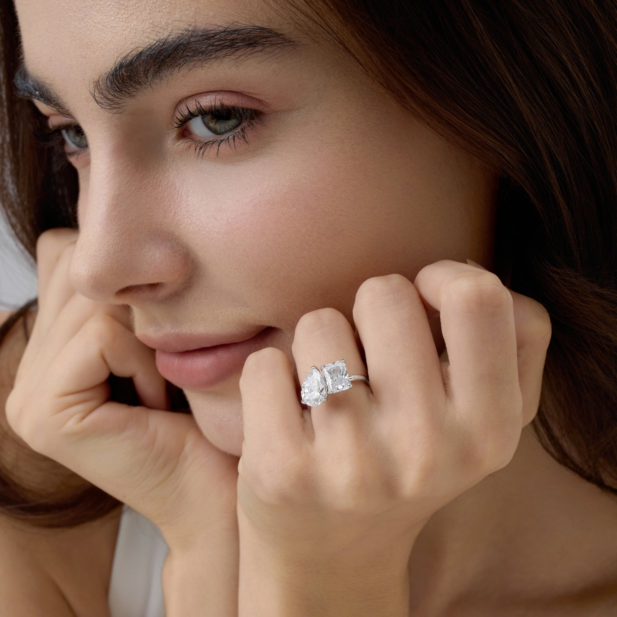 Celebrate connection, contrast, and modern romance with the Toi Et Moi Pear & Radiant Cut Two Stone 4 Carat Engagement Ring — a striking expression of love where “You and Me” meet in perfect harmony.