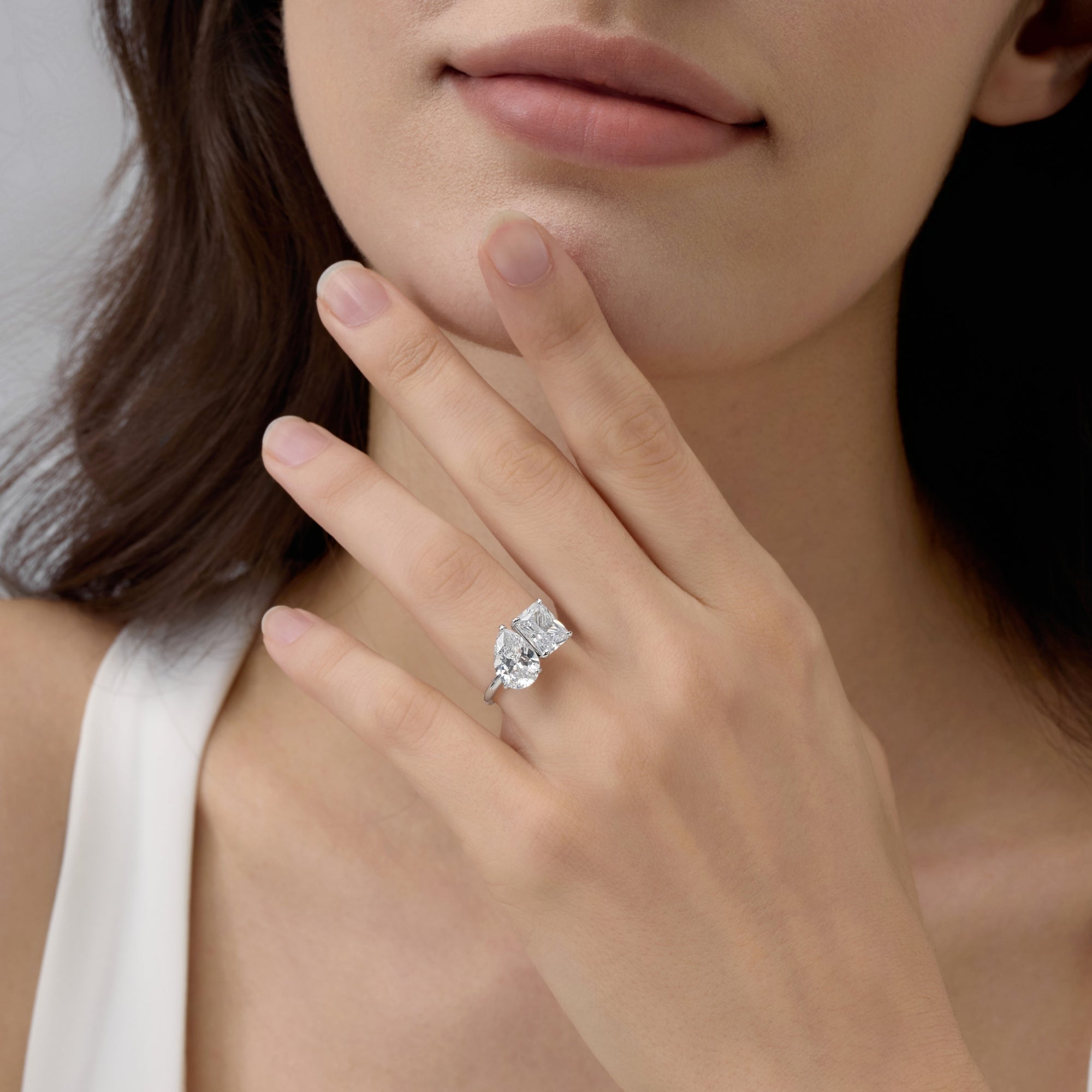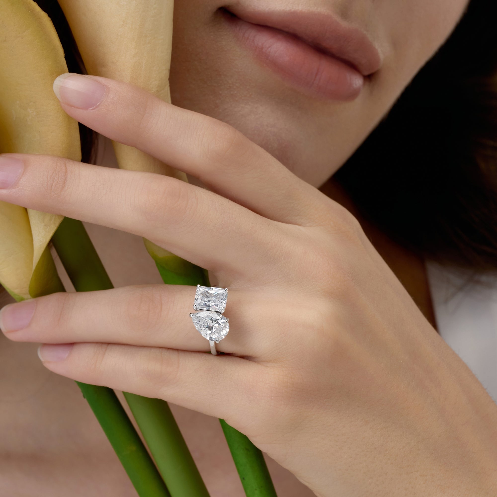 Toi Et Moi Pear & Radiant Cut Two Stone Engagement Ring – 4 Carat