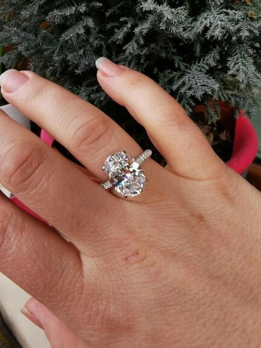 Hidden Halo 4 Carat Oval Cut Solitaire Engagement Ring