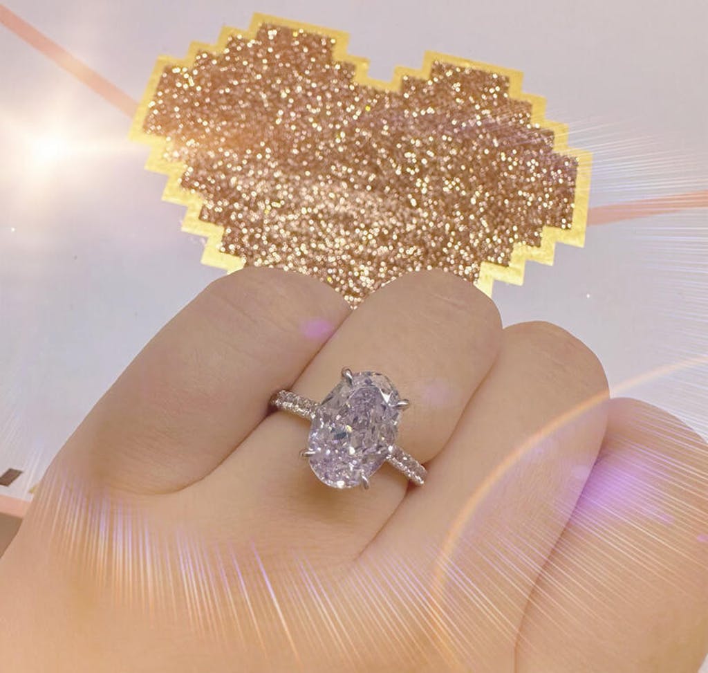 Introducing the Hidden Halo 4 Carat Oval Cut Solitaire Engagement Ring - a timeless symbol of eternal love and commitment. Featuring a dazzling 4-carat radiant oval-cut cubic zirconia (simulated diamond), this ring is truly striking. From the genesis of your union, marked by the engagement ring, to the enduring promise symbolized by the eternity ring, our rings serve as timeless mementos, immortalizing your love story for all eternity.