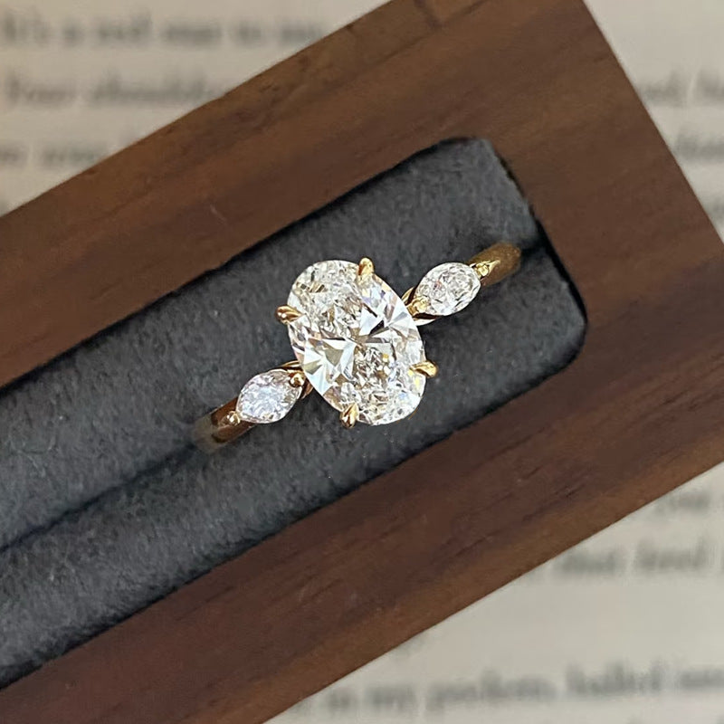 • Main Stone: Oval Cut, 9mm × 6mm (Approx. 1.8 Carat)