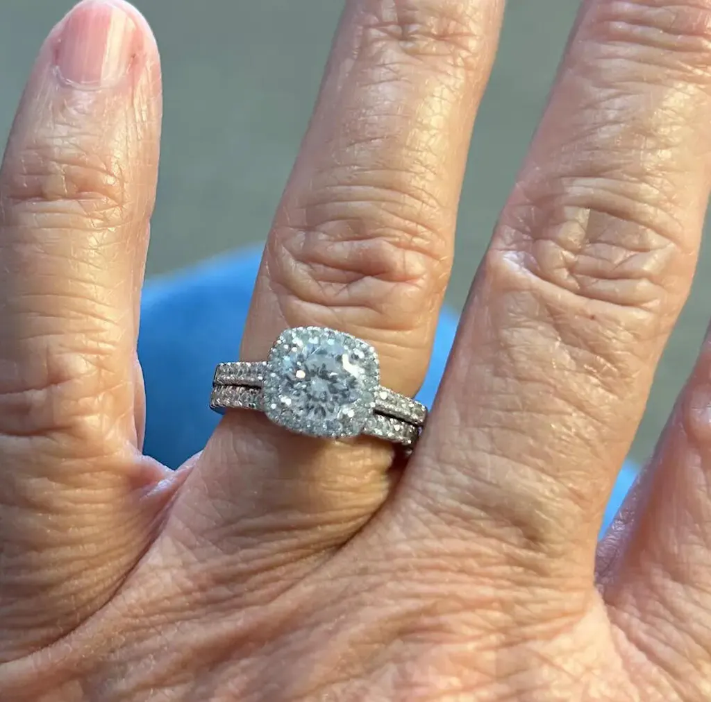 This 1.5 Carat Round Cushion Halo bridal ring set is now available as a standalone engagement ring, combining classic design with everyday luxury.